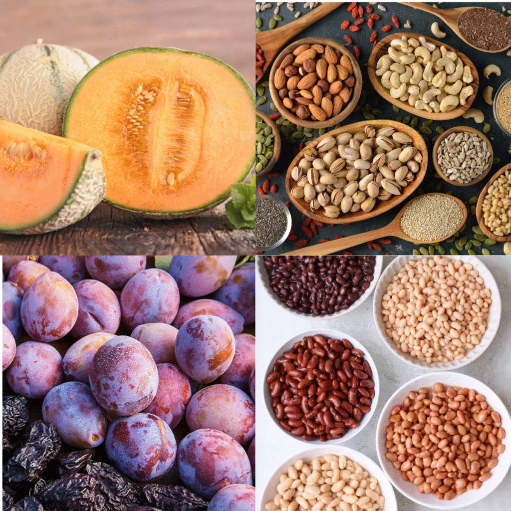 • Prunes, beans, peas