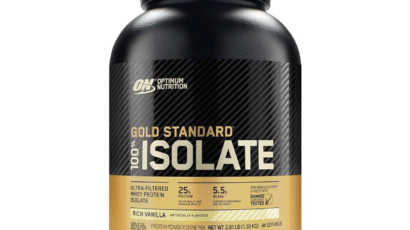 Gold Standard 100% Isolate by Optimum Nutrition offers 25g of ultra-pure whey protein isolate per serving with 0g fat, 1g carbs, and 5.5g BCAAs. Designed for muscle support and recovery, it’s gluten-free, banned-substance tested, and ideal for clean, high-performance nutrition.
