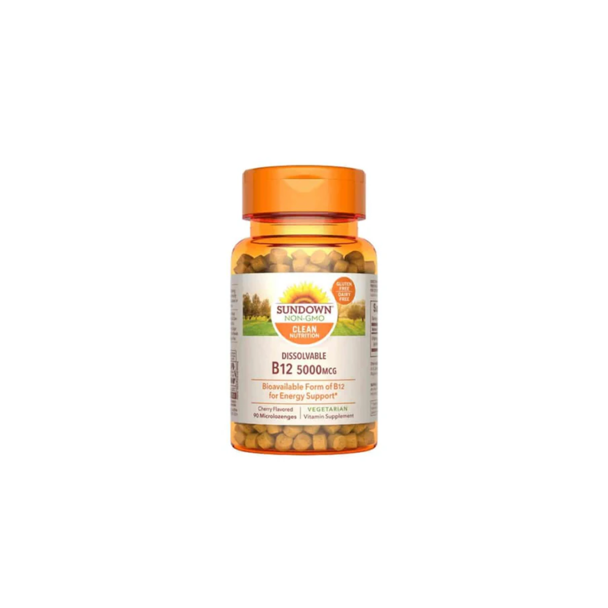 Sundown Dissolvable B12 5000 mcg provides a high-potency, bioavailable form of Vitamin B12 (methylcobalamin) to support energy production and nervous system health. These cherry-flavored, dissolvable microlozenges are non-GMO, gluten-free, dairy-free, and contain no artificial colors, flavors, or preservatives.